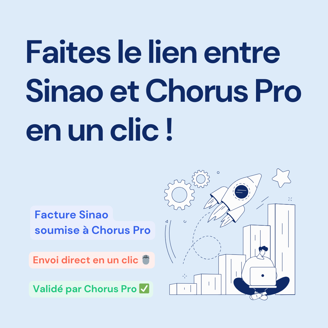 Sinao est conçu pour le dépôt de factures automatique sur Chorus Pro. Grâce au connecteur direct gratuit avec Chorus Pro intégré au sein de Sinao et grâce au format Factur-X (avec sa partie .xml intégrée) : les factures à destination des structures publiques peuvent être déposées et envoyées à votre client depuis Sinao.